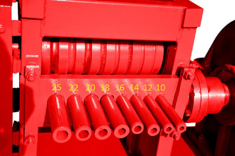 Straighten iron bar will be exported through these holes, different with import hole, export hole has 8 pcs conduits, which also indicate hole size,